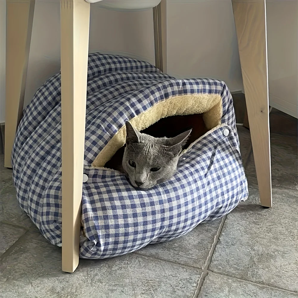 Designed for feline comfort during colder months, this enclosed cat bed provides a cozy retreat that traps warmth while offering security. The fully enclosed structure creates a den-like environment that cats naturally seek, reducing stress and promoting better sleep. Ideal for indoor cats, it features durable construction to withstand daily use and easy maintenance. Perfect for multi-cat households where your pet needs a private sanctuary. Keep your cat warm, comfortable, and content through winter.